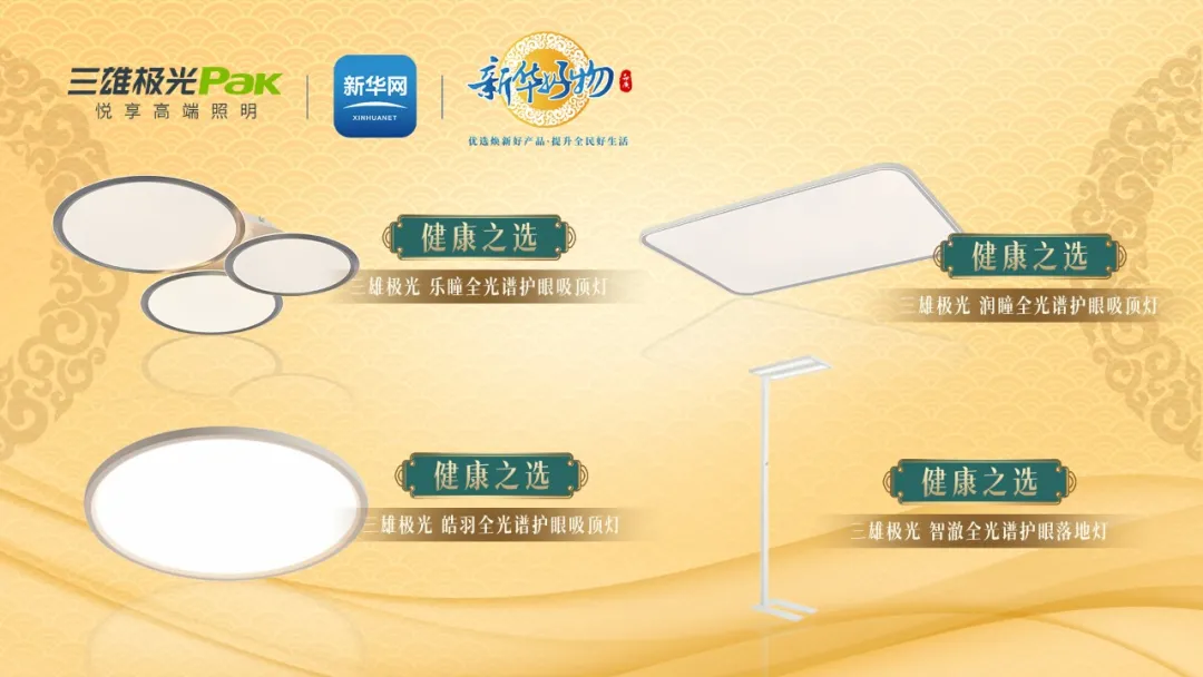 正是基于这样的不懈努力与深厚积淀,三雄极光的全光谱照明产品赢得了市场的广泛认可与好评。2023年,三雄极光四款全光谱产品是行业内唯一入选新华网·新华好物优选产品的照明产品,成功进入“健康之选”行列。三雄极光全光谱照明产品不仅在舒适照度、高显色指数、无可视频闪、无蓝光危害上具有优势,同时搭载智能调控功能,支持用户自主调节灯光效果,满足个性化使用需求。