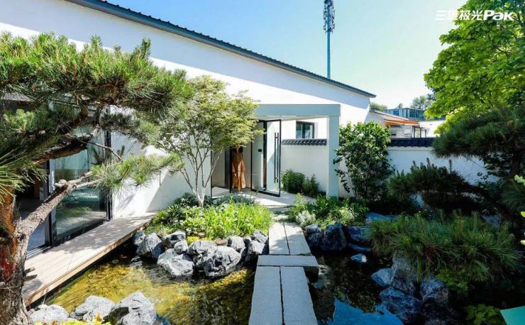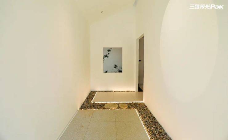 三雄极光霂合艺术馆,灵动的流水,小石桥,茂林修竹,沉稳优雅的白灰色系构建空间的基本面貌,营造优雅、知性、平和的视觉氛围,部分空间以原木色作为点缀,更显感性和灵动,将科技与人文融汇合一。