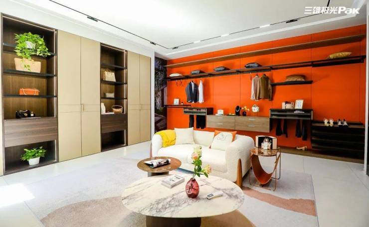 三雄极光霂合艺术馆在衣帽间做足功夫,引入多种衣柜设计形式以及服饰样品,配备高品质影领灯光设备,模拟多样生活图景,将沉浸式体验做到极致。