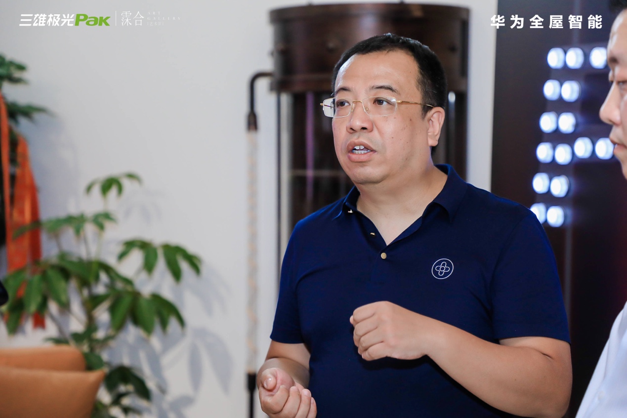 在开业现场,行业嘉宾、设计师和媒体共同见证了这集光影艺术、创新科技于一体的人居美学新形态,并现场采访了三雄极光家居事业部副总经理赵峰、三雄极光霂合艺术馆创始人陈天华。
